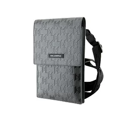 Сумка Lagerfeld Wallet Phone Pouch Saffiano Monogram Ikonik patch для смартфонов, серебро / черный