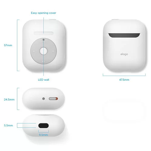 Чехол Elago AW6 Music player case для AirPods Gen 1 & 2, силикон, белый