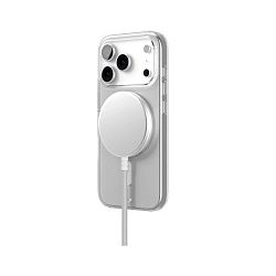 Встроенный MagSafe-совместимый магнит позволяет надёжно зафиксировать зарядное устройство на чехле и заряжать iPhone на максимальной скорости