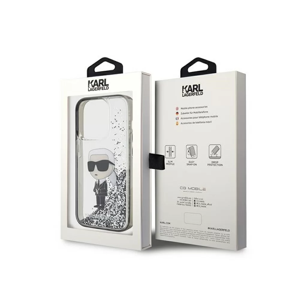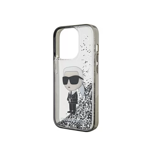 Чехол Lagerfeld для iPhone 15 Plus Liquid Glitter NFT Karl Ikonik Hard Transparent/Black