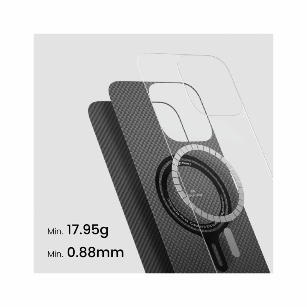 Наш чехол для телефона разработан с использованием передовой технологии Amber Magnet Film, которая позволяет интегрировать мощное магнитное кольцо прямо в чехол. Это решение не только сохраняет видимую магнитную структуру, но и делает чехол невероятно тонким и легким. С минимальным весом всего 17,85 г и толщиной 0,85 мм, вы едва заметите его на своем устройстве. Данные характеристики были получены в ходе лабораторных испытаний PITAKA с использованием чехла для iPhone 16, возможны незначительные отклонения в зависимости от модели устройства. Благодаря этим инновациям, чехол не добавляет лишнего объема, сохраняя оригинальный дизайн вашего телефона.