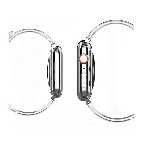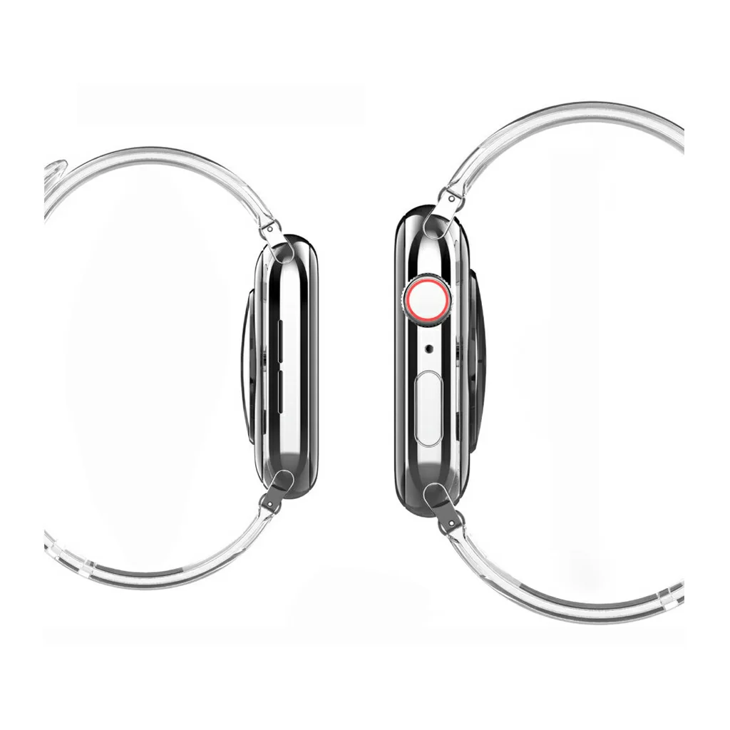 Элегантный прозрачный ремешок для Apple Watch из мягкого термополиуретана высокого качества. Легко застегивается и регулируется по запястью. Воздухопроницаемая гипоаллергенная поверхность обеспечивает большую устойчивость к поту. Надежное крепление и эргономичный дизайн делают ношение ремешка чрезвычайно удобным для повседневного использования. Со временем не теряет цвет и форму, легко моется. Совместим с часами Apple Watch с корпусом 45/44/42 мм