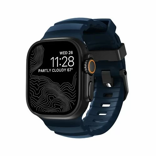 Ремешок Nomad Rocky Point Band для Apple Watch 49/45/44/42mm, black lock, atlantic | синий