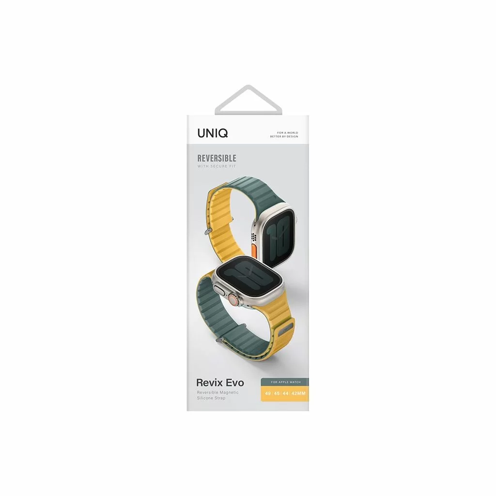 Ремешок Uniq Revix EVO Premium для Apple Watch, 49/45/44/42 мм, двухсторонний, зеленый/желтый
