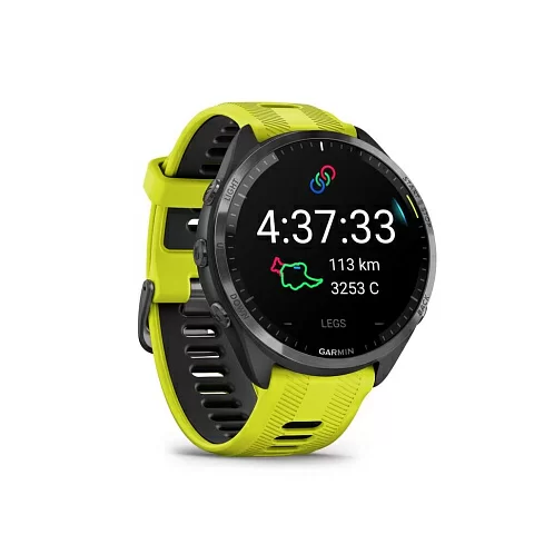 Умные часы Garmin Forerunner 965 черные, темно-серый DLC/титановый безель, ремешок - желто-черный