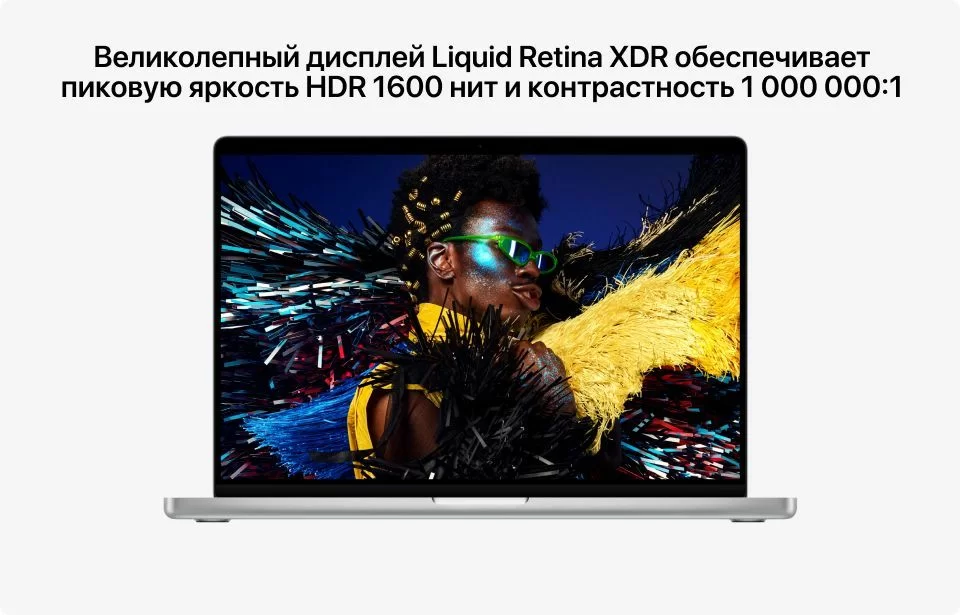 Перемещение между ярким светом и полной темнотой — без забот. Работайте в любом освещении: Liquid Retina XDR достигает 1600 нит в HDR, обеспечивает до 1000 нит для SDR при ярком освещении и опускает яркость до 1 нита для комфортной работы в темноте.