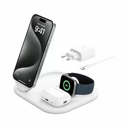 Беспроводное зарядное устройство Belkin Boost Charge Pro 3in1 MagSafe Qi2, 15вт, белый (EU)