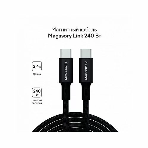 Магнитный кабель Magssory Link C 240W, USB-C, 2,4м, черный