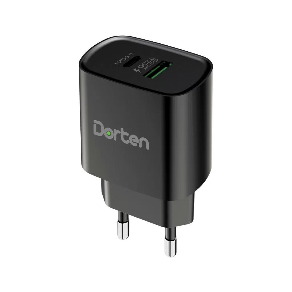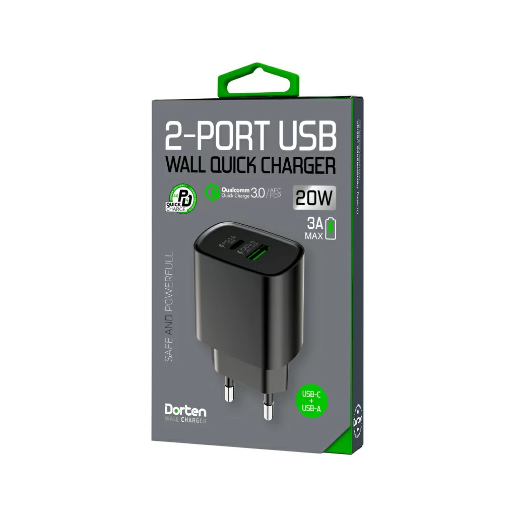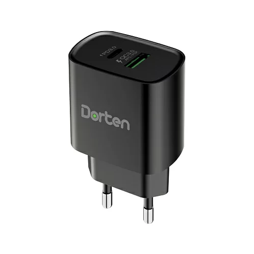 Сетевое зарядное устройство Dorten 2-Port USB 20W Wall Quick Charger PD3.0+QC3.0, черный