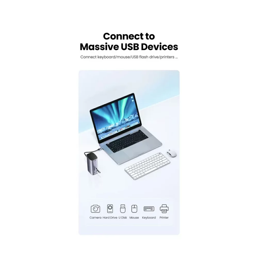 Док-станция UGREEN для MacBook совместима с системами ОС Windows и macOS, включая Macbook M1 M2, и позволяет расширить экраны до трех разных дисплеев. Эта док-станция имеет самое высокое разрешение экрана на рынке.