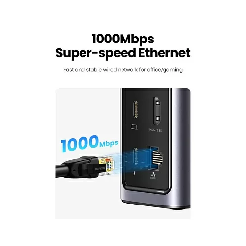 USB-хаб UGREEN CM555 Revodok Pro 12-in-1 8K@60Hz USB-C, серый