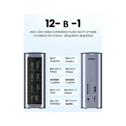 UGREEN CM555 Revodok Pro 12-in-1 8K@60Hz USB-C