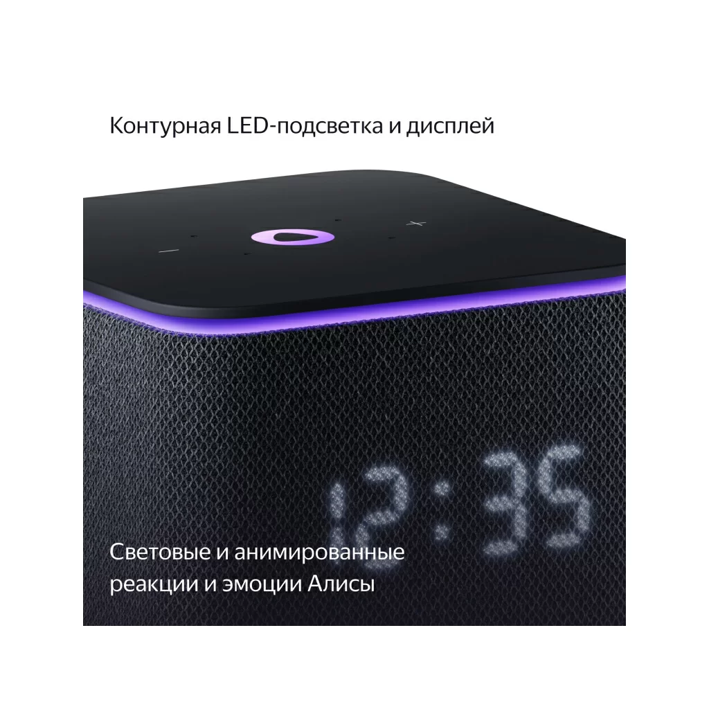 Активная контурная LED-подсветка и анимированные реакции на дисплее добавляют эмоций, когда слушаете музыку и общаетесь с Алисой. LED-дисплей показывает время и температуру
