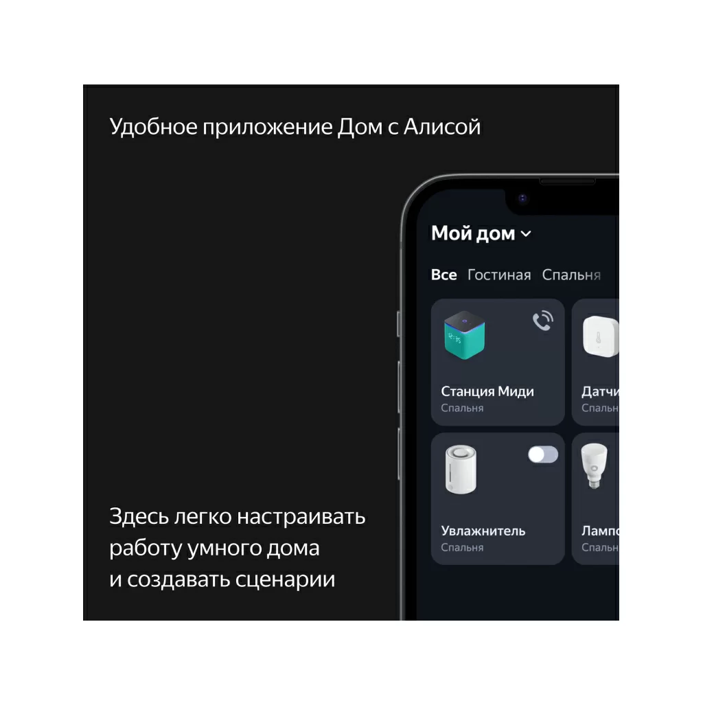 В Яндекс Станцию Миди уже встроен хаб управления Zigbee™, благодаря которому она напрямую взаимодействует с датчиками и другими устройствами умного дома, работающими по протоколу Zigbee™. Сделайте Станцию Миди центром умного дома и общайтесь с ним голосом: например, спрашивайте у Алисы, какие сейчас температура и влажность в комнате. Впервые голосовое управление для некоторых сценариев с определёнными Zigbee™-устройствами может работать даже без интернета.