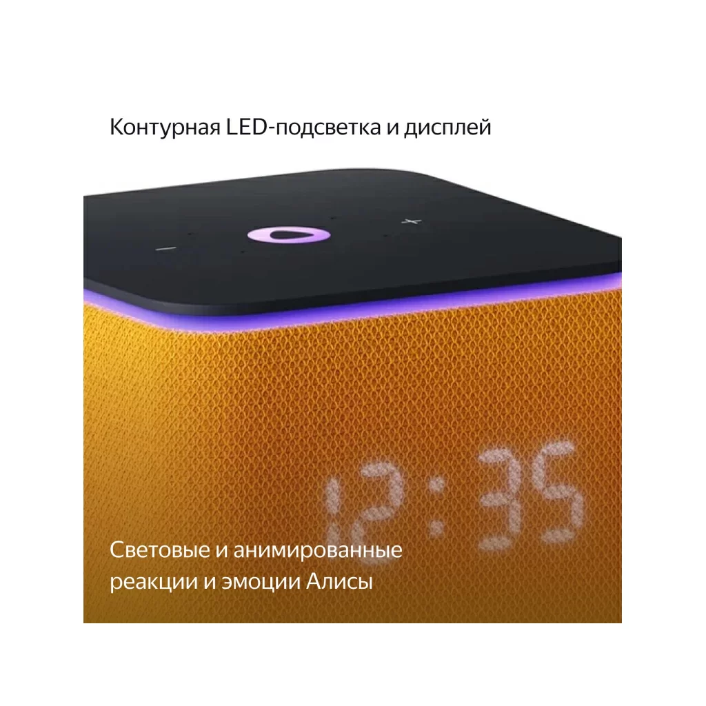Активная контурная LED-подсветка и анимированные реакции на дисплее добавляют эмоций, когда слушаете музыку и общаетесь с Алисой. LED-дисплей показывает время и температуру